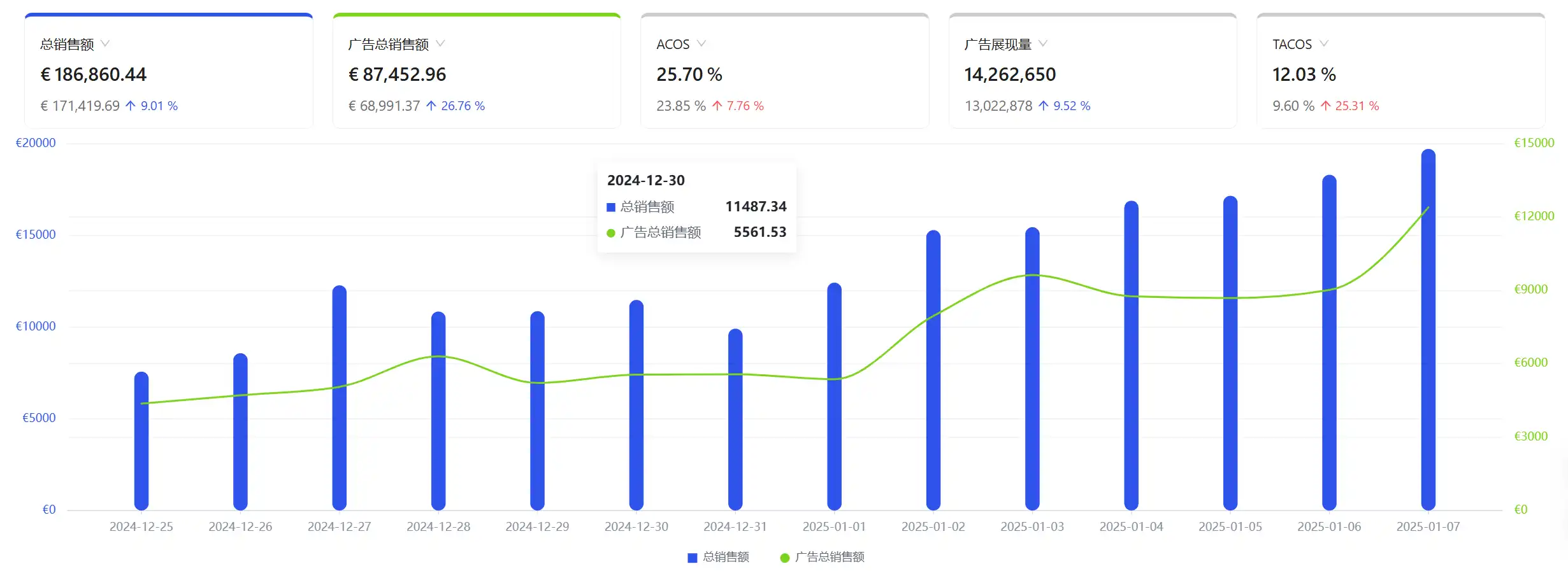 在广告优化的推动下,销售额也实现了大幅增长: